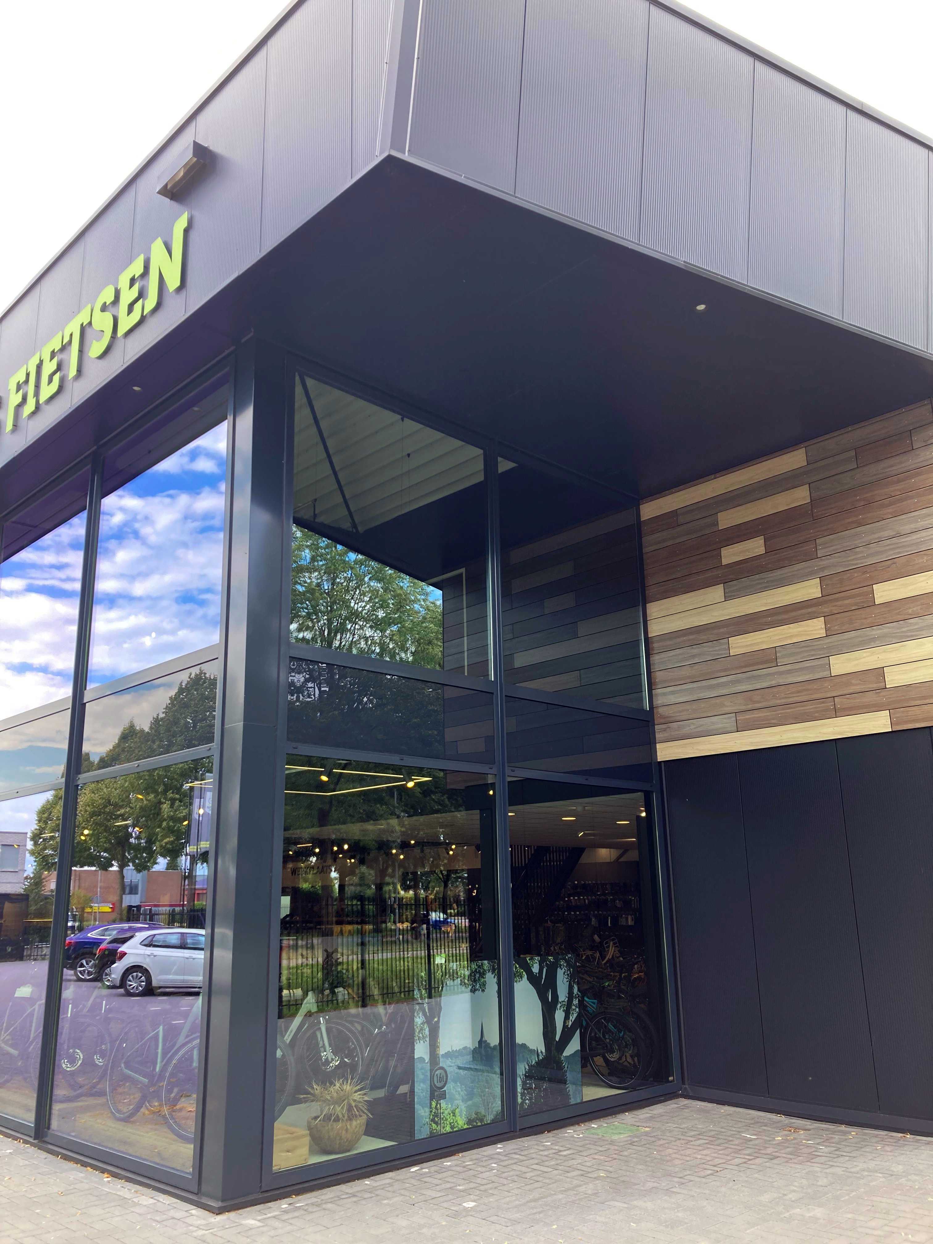 Voor Liemers Fietsen verbouwden wij een bedrijfspand tot een hedendaagse winkel met showroom, werkplaats en kantoor. Aan de buitenzijde zijn de entree en de uitstekende koof op de eerste verdieping afgewerkt met volkern platen in drie kleuren houtmotief. Dit gebouw is een blikvanger bij de entree van industrieterrein 't Holland.